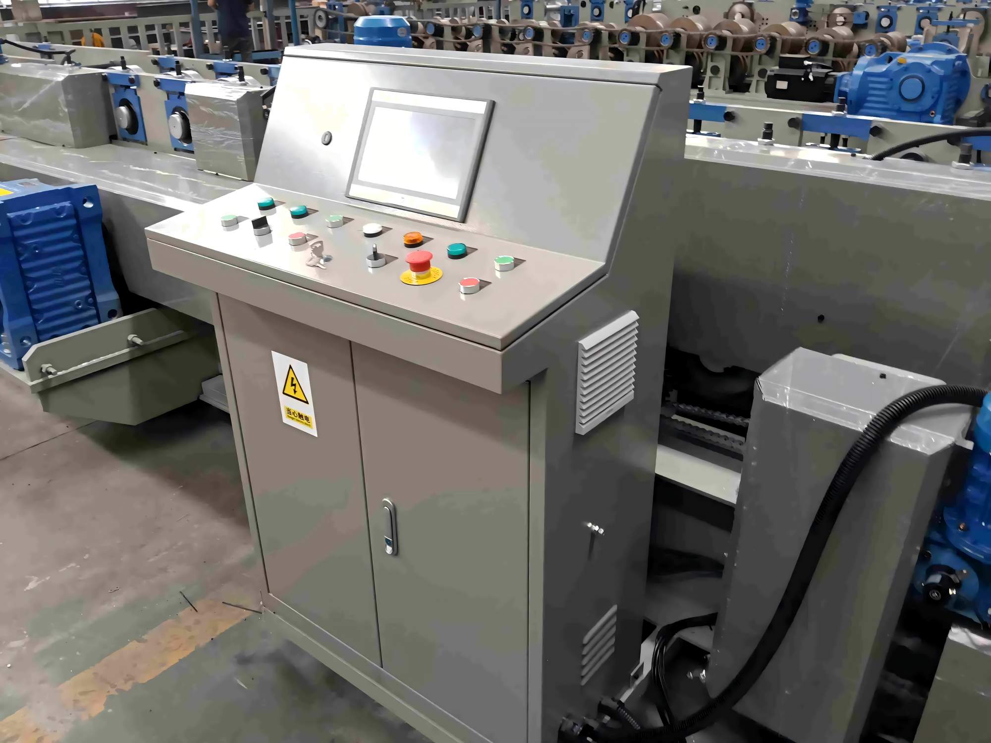 PLC制御キャビネット:デルタPLC +オムロンエンコーダ、タッチスクリーン操作、長さ誤差±2mm、中国語と英語をサポート、380V/50HZ三相(カスタマイズ可能)。