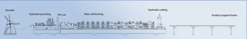 コアパラメータ: ウェブ処理幅 100 ~ 600mm、フランジ 10mm、検査厚さ 0.5mm。板金1.5~3mmカラーコート板(PPGI)、亜鉛メッキ板(GI)の加工。生産速度は約15m/分。